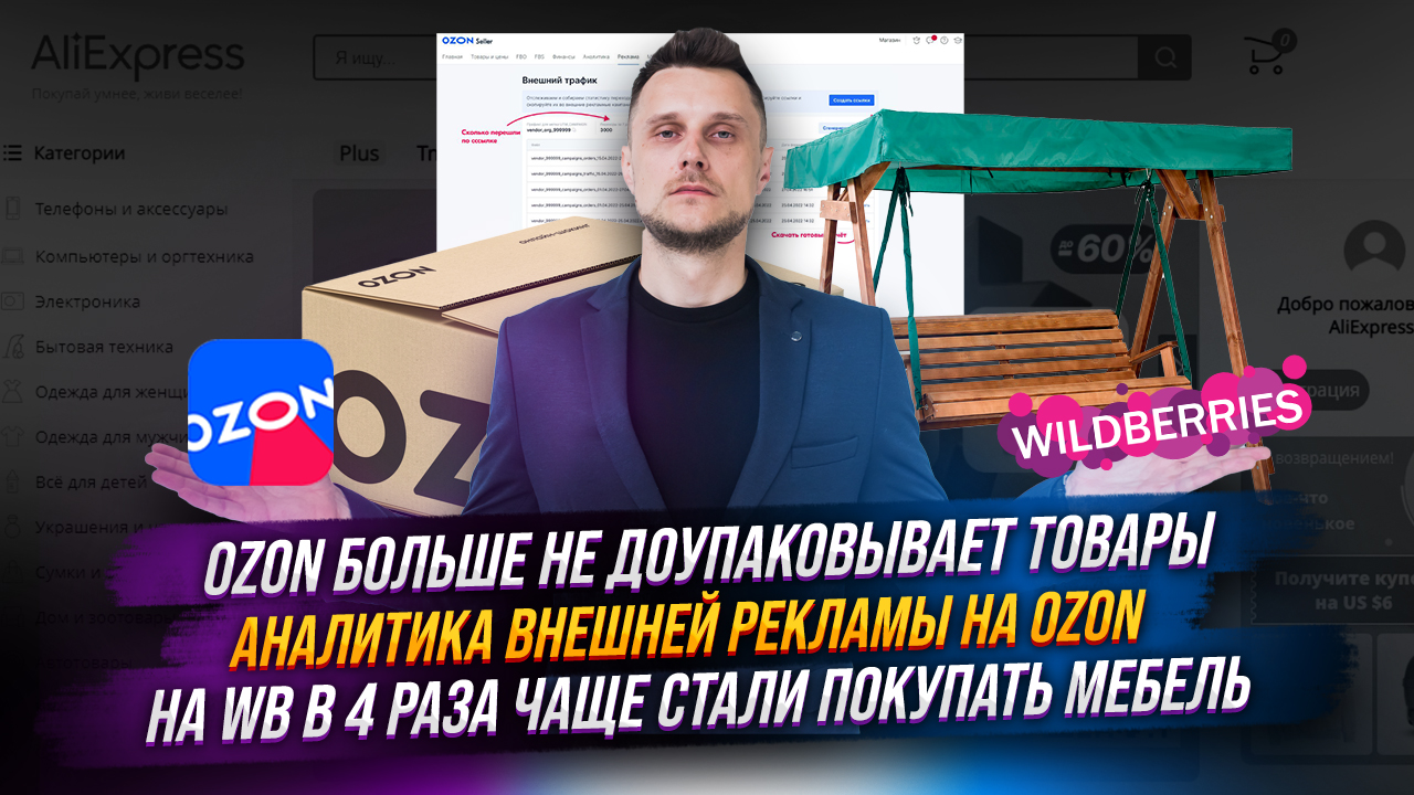 Аналитика внешней рекламы на Ozon | Мебель на WB покупают в 4 раза чаще | Ozon не упаковывает товары