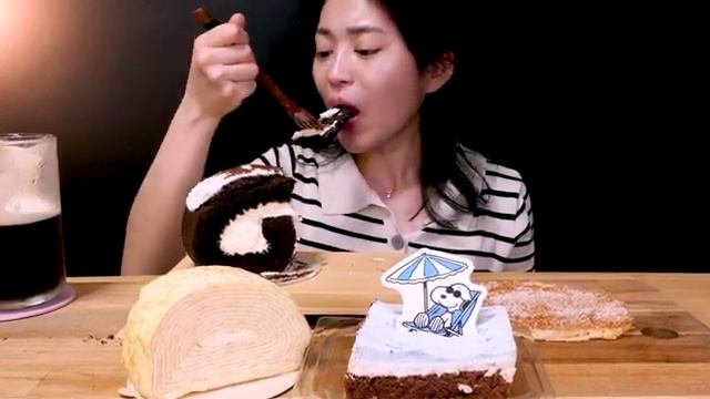 스타벅스와 투썸의 조합스타벅스와 투썸의 신메뉴 케이크 먹방 Starbucks Twosome Chocolate Strawberry cake ASMR Mukbang