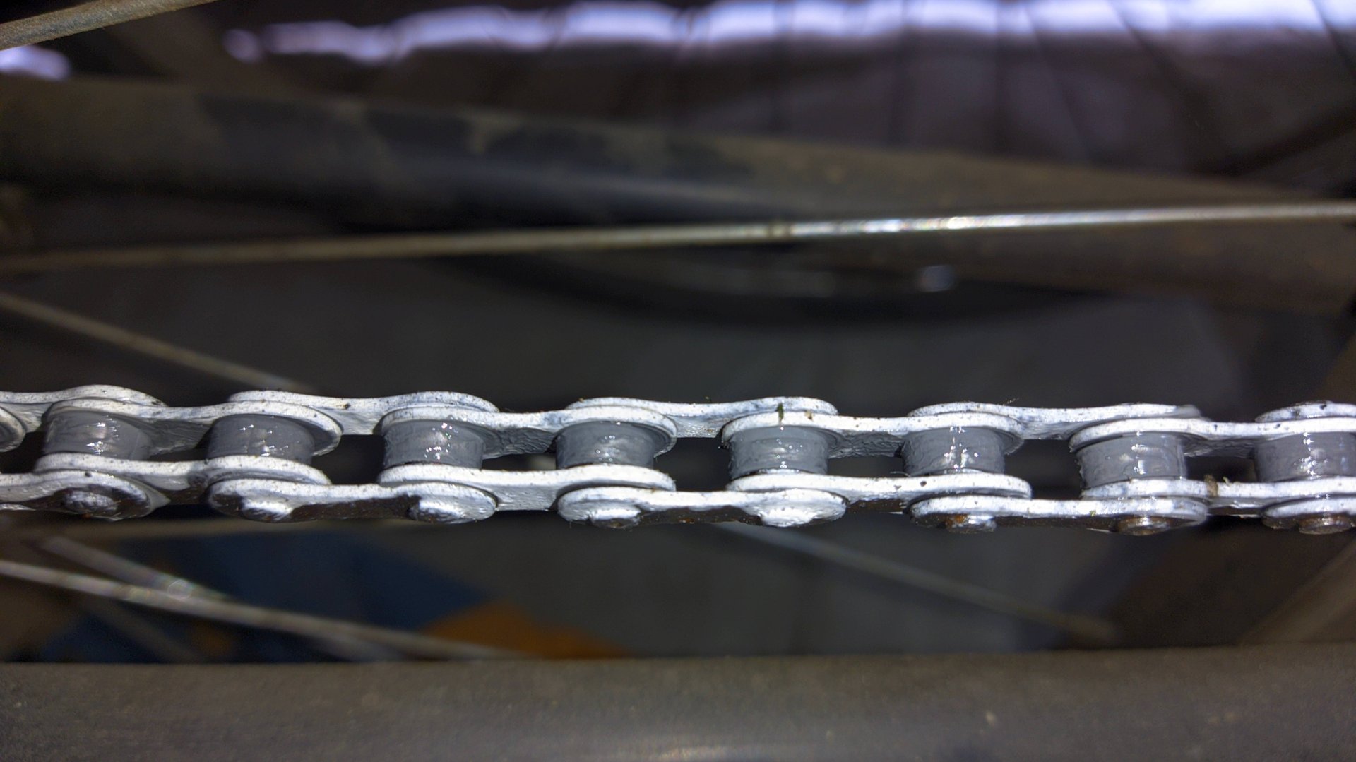 Тефлоновая смазка цепи после 500 км пробега по сухим дорогам.