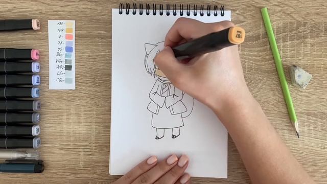 Как нарисовать Томоэ карандашом и скетч маркерами | Рисунок для детей, поэтапно и легко