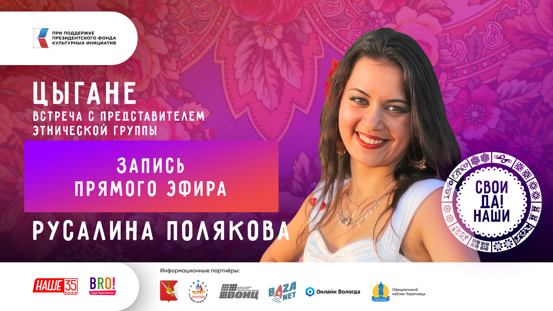 Русалина Полякова - представитель цыганского народа. Выпускница «Российского института театрального искусства — ГИТИС.», факультета Актерского мастерства, в цыганской группе, под руководством заслуженных артистов: Екатерины Андреевны Жемчужной и Жемчужного Георгия Николаевича. Закончила Вологодский Педагогический Университет, по специализации – юриспруденция. Руководитель группы цыганского танца «Вольный ветер». Подключайтесь к обсуждению. Наш проект о многонациональном народе Вологодской области. #фондкультурныхинициатив #грантдлякреативныхкоманд #культура #наше35 #своиданаши #цыгане