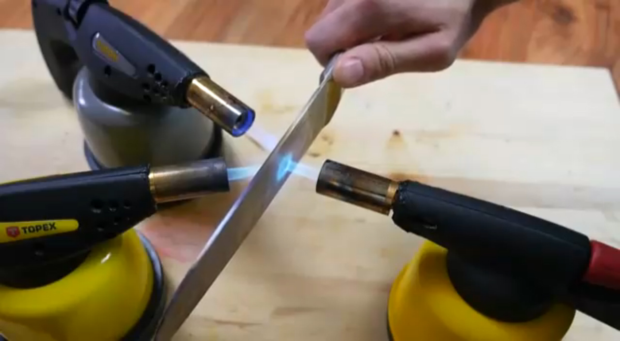 Эксперимент: раскаленный до 1000 градусов нож против шара из резинок (и не только)