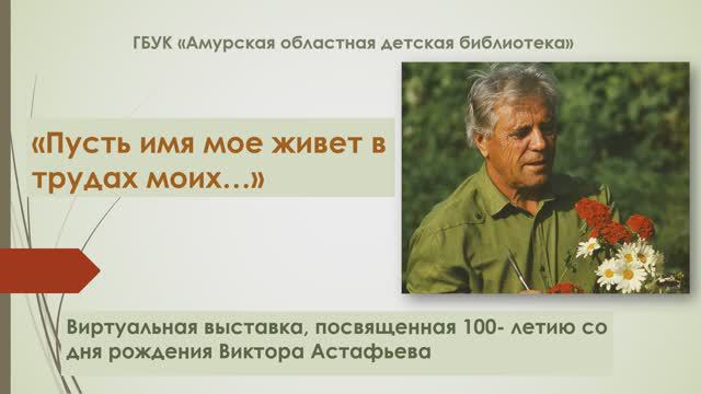 1 мая 1924 года, родился Виктор Петрович Астафьев – русский писатель, эссеист, драматург и сценарист.  Книги этого автора – как для детей, так и для взрослых – пользуются огромной популярностью уже более полувека.  Его невероятные истории, взятые из личного опыта, помогают детям преодолевать трудности, а взрослым – задумываться о по-настоящему важных вещах.  Если вы ещё не читали книг Виктора Петровича Астафьева или хотите познакомить с ними своих детей, то предлагаем вам для просмотра виртуальную книжную выставку по творчеству писателя «Пусть имя мое живет в трудах моих…».