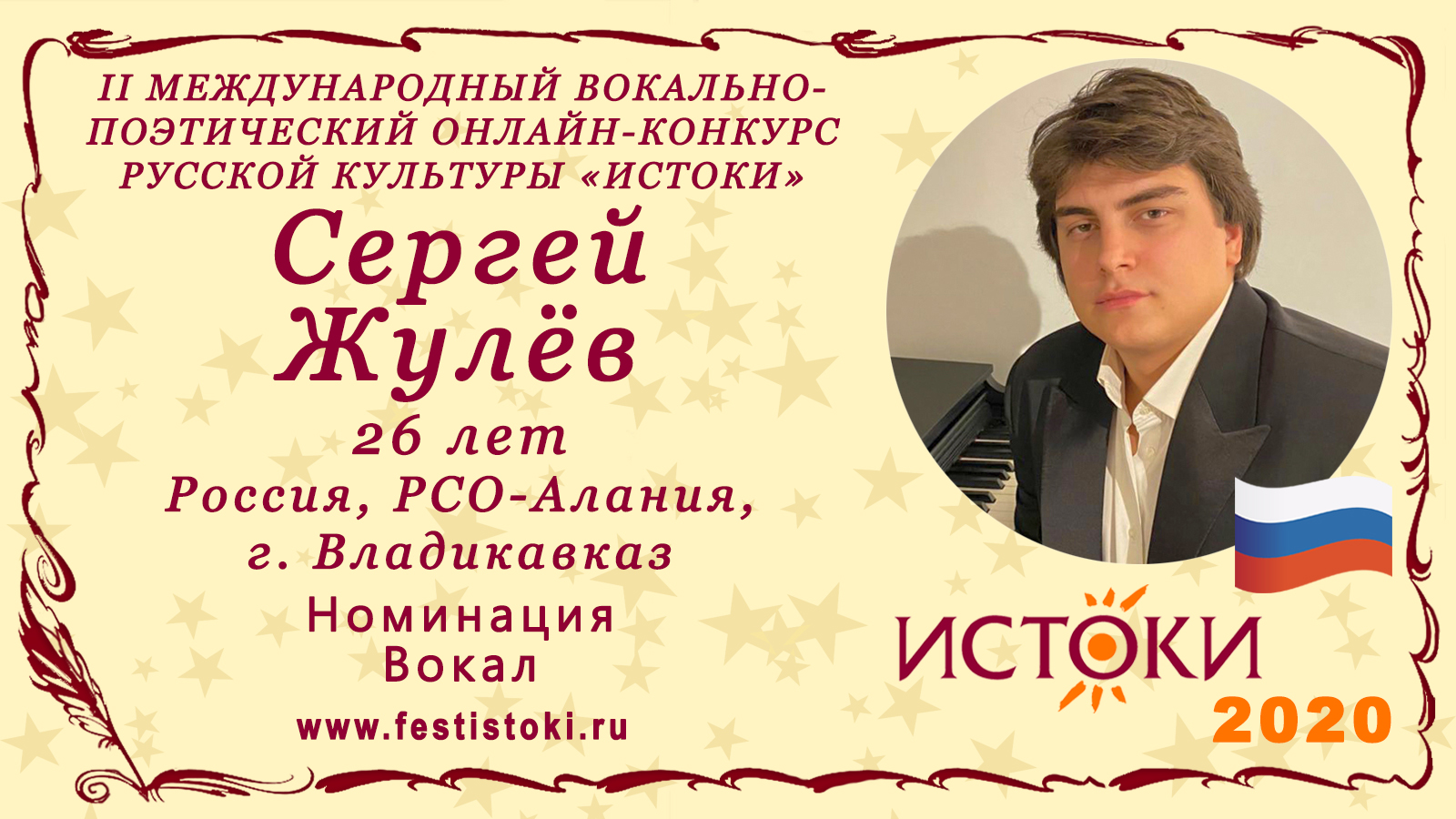 Участник II Международного вокально-поэтического онлайн-конкурса русской культуры «Истоки». Номинация - Вокал. Русская народная песня "Славное море - священный Байкал" Сайт: www.festistoki.ru / www.festistoki.com E-mail: festistoki@mail.ru