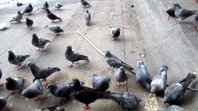 Осталось немного кунжута, начал чуток плесневеть. Кинули голубям. А они за осень одичали. Окно открою – разбегаются. Закрою – подходят ближе и начинают есть. Что поделать – сезон такой... Под музыку Поля Мориа "Alone in the World"