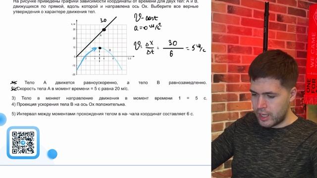 На рисунке приведены графики зависимости координаты от времени для двух тел_ А и В - №21848