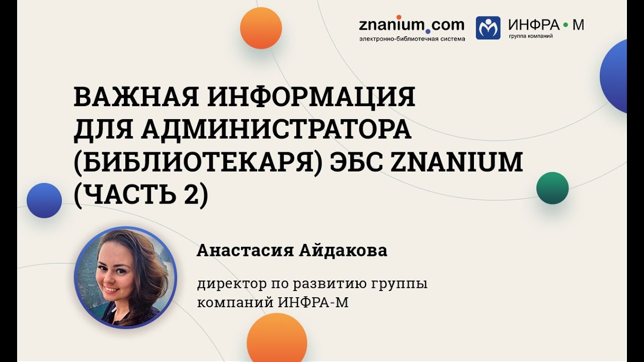 В этом видео с директором по развитию группы компаний ИНФРА-М Анастасией Айдаковой вы узнаете: — как можно регистрировать студентов и преподавателей и почему регистрация важна; — чем отличаются права доступа для студента, преподавателя и администратора; — как работать в ЭБС (поиск, каталоги, копирование информации).