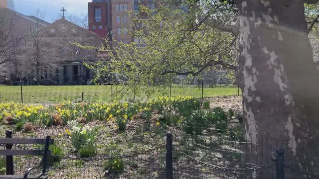 🇺🇸Весенняя прогулка по Нью-Йорку/Гринвич-Виллидж, парк Вашингтон-сквер, обед в саду Пинто, 2 апреля 2022 г. Прогулка по Гринвич-Виллидж, парку Вашингтон-сквер, Вашингтон-Мьюс (историческая мощеная улица с закрытыми воротами), рынку Джефферсона, мемориалу «Плитка для Америки» прекрасным солнечным субботним днем🌷🤗