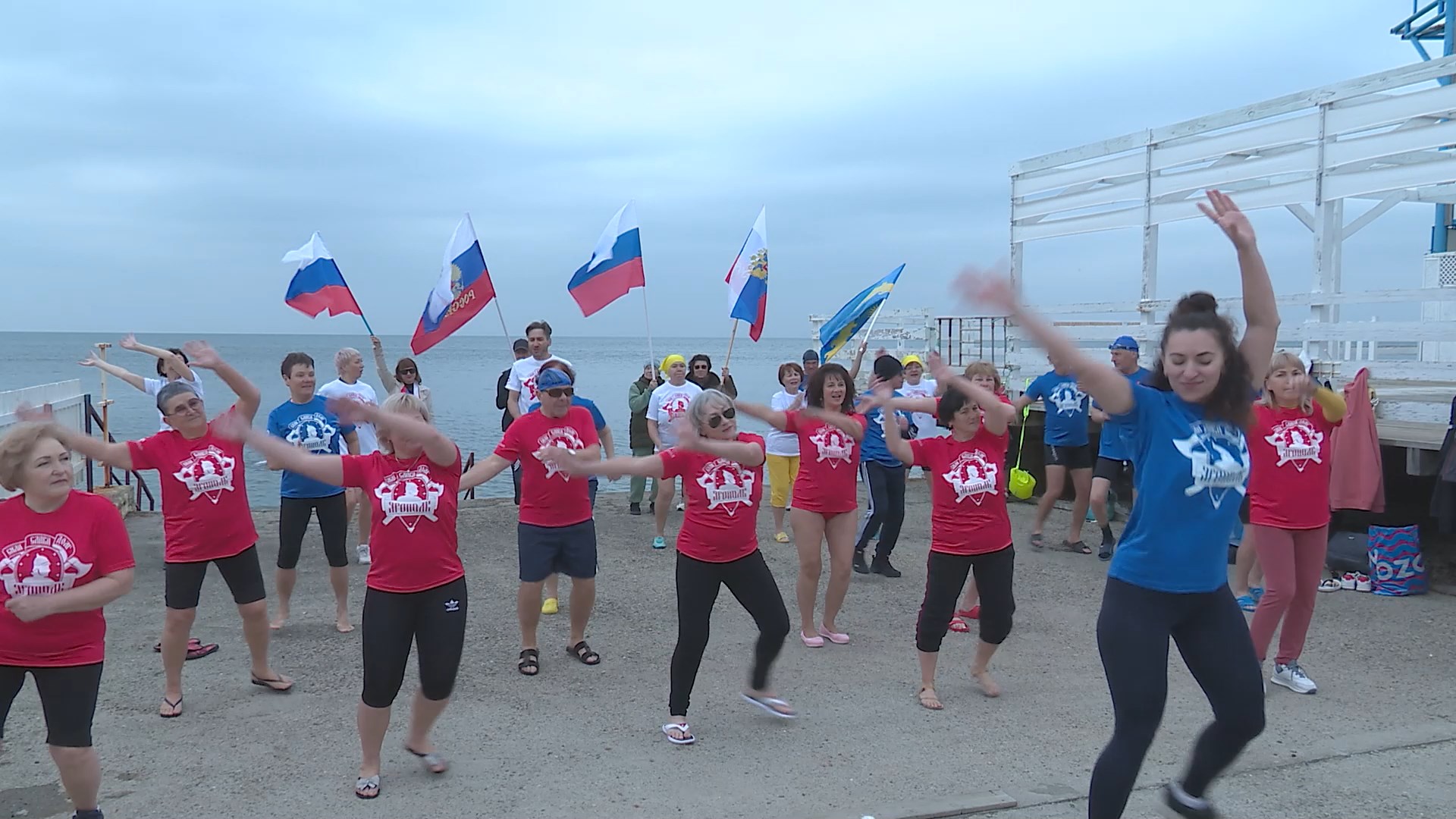 В день воссоединения республики с Россией порядка 40 жителей курорта с флагами устроили заплыв в Черном море. Такие патриотические мероприятия «моржи» устраивают регулярно, и приглашают в свои ряды единомышленников.