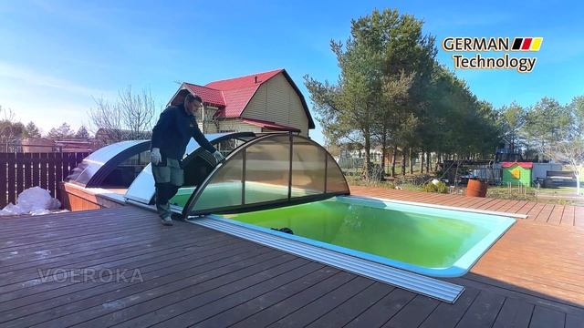 Павильон для бассейна из поликарбоната. На видео представлен раздвижной павильон для бассейна модель "TELEDOM" VOEROKA. Классическая форма павильона. Это конструкция павильона средней высоты. Размеры павильона: Длина- 9,60м. Ширина- 4,05м. Высота- 1,25м. • Остекление павильона выполнено из сотового поликарбоната, цвет поликарбоната бронза. • Профильная система алюминиевая. Цвет профилей Коричневый. • Павильон состоит из 5 передвижных секций, секции перемещаются вдоль бассейна не зависимо друг от друга. • На большой секции сбоку, установлена дверь купе. Это позволяет, не сдвигая секции павильона спустить в бассейн. Бассейном можно пользоваться в любую погоду. • Для полного открытия бассейна, установлено продление рельсов. Секции павильона сдвигаются на удлинения рельсов, это позволяет полностью открыть бассейн. Преимущества продукции VOEROKA: • Несущие дуговые профили усиленные специально для климата России. Разнообразие профильной системы позволяет перекрыть пролет до 9,5 метров. Например на данном павильоне использован профиль сечением 50х40мм. • Остекление павильона выполнено из поликарбоната. Поликарбонат с УФ - стабилизатором Немецкого производства BAYER (Макролон), с отделкой внутренней поверхности NO DROP. Гарантия производителя 15 лет. Высокая ударная прочность, поликарбонат выдерживает удары стихии, и надежно противостоит граду. • Все открытые полости профилей декорируются резиновыми уплотнителями и пластиковыми заглушками с фирменной символикой "VOEROKA". • Направляющие рельсы «Комфорт» серии NEW, рельса округлая с сглаженными формами. Покрытие рельсов защитное и декоративное анодирование, покрытие методом анодирования повышает устойчивость к коррозии и износу профилей, цвет профилей элокс серебро. Крепеж рельсы скрытый. Рельса в виде цельного единого блока, что является несомненным преимуществом! Контакты: Сайт: www.VOEROKA-Rus.ru Email: VOEROKA@Gmail.com Tel.: +7(495)227-81-24 #ПавильонДляБассейна #НакрытиеДляБассейнов #ПристройкиКдому #НавесыДляБассейнов #ПавильоныДляБассейновАстрапулс #СтроительствоБассейнов #КомпозитныеБассейны #ОборудованиеДляБассейнов #Бассейны #Бассейнподключ #павильоныдлябассейна #Франмер #Franmer #compasspools #Павильоныдлябассейнов