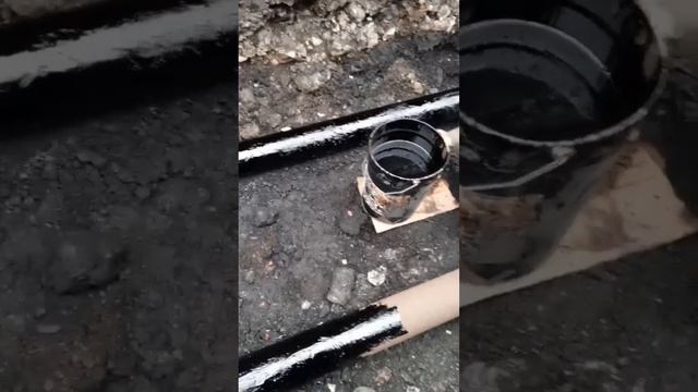 на стройке, делаем гидроизоляцию трубопровода в котловане.