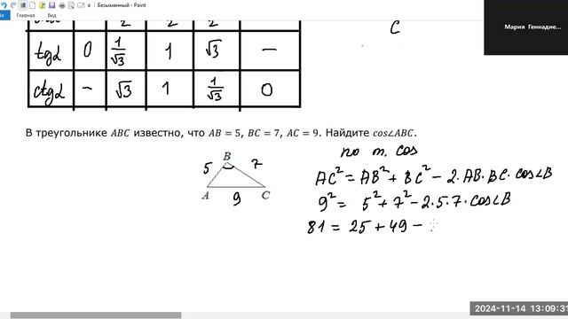 1411 теорема косинусов пример решения
