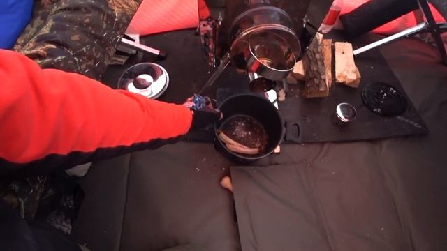 Видео с Ютюб. Ночуем на льду. Рыбалка с домашним комфортом. Чуть не сожгли новую палатку.