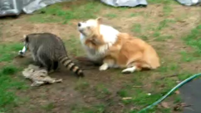 Енот оседлал Корги