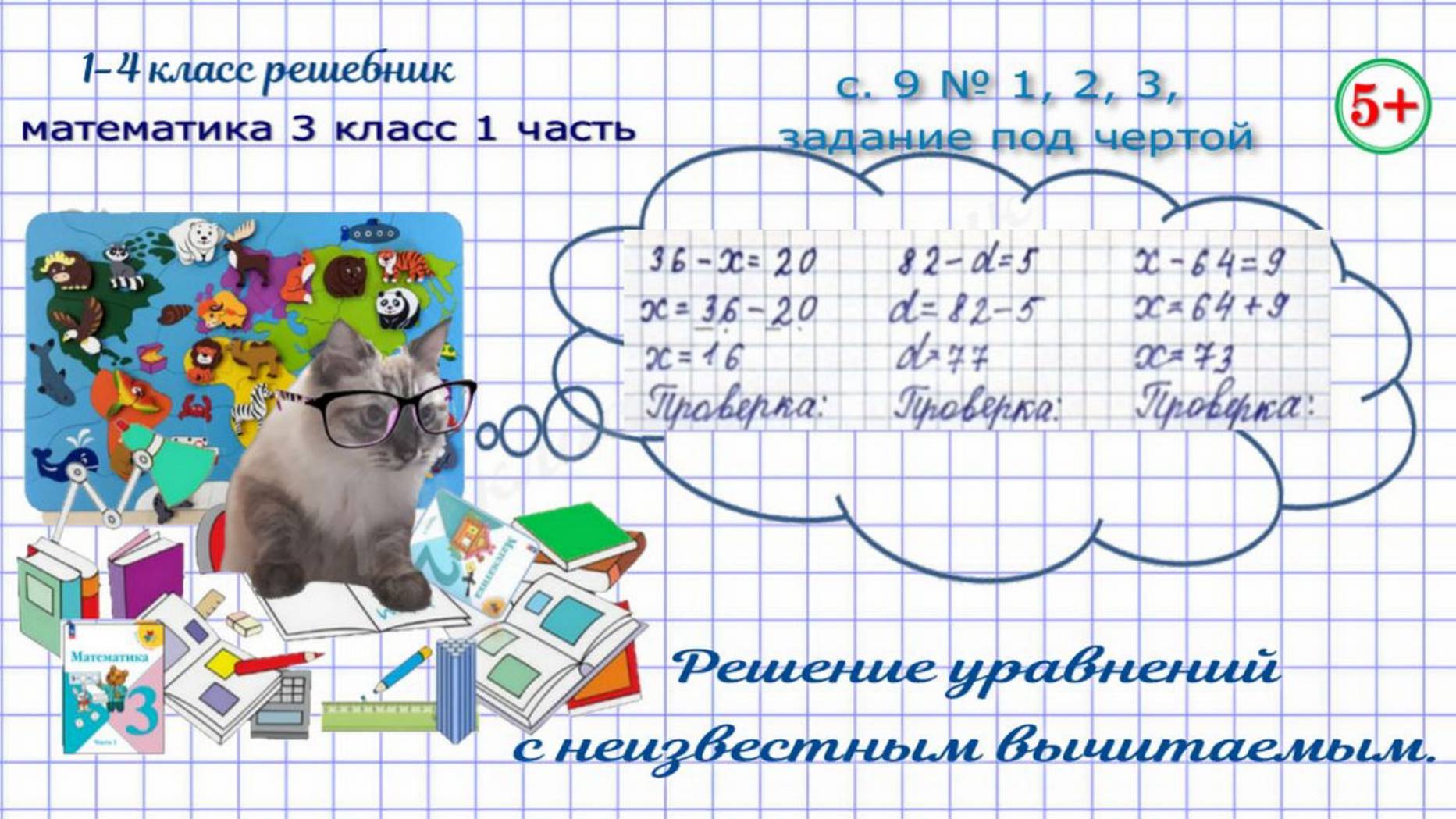 Стр. 9 № 1, 2, 3, под чертой уравнения с неизвестным вычитаемым математика 3 кл 1 часть ФГОС 2023