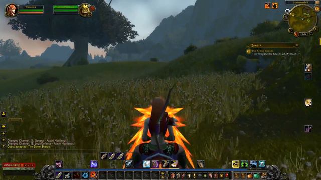 Side: Horde Start: Zaruk End: Shards of Myzrael Description Ancient stones are strewn across this land. The elements flock to them, surrounding them protectively. These are sites of great power, and the largest is just west of Hammerfall. Not a soul trespasses, but if you go there alone, you can hear whispers from the earth itself. I have not visited there in a long while... but our grunts have told me the whispers have started again. Would you look for me? Will you see if the stones still speak? Gains: 2,595 experience
