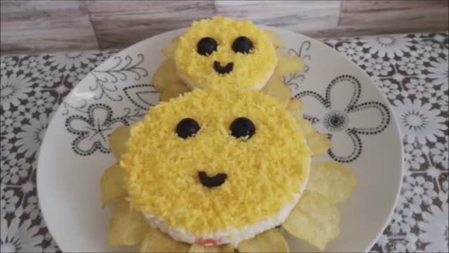 VK сообщество: https://vk.com/club225549357 ГОТОВИМ С ЛЮБОВЬЮ на Ютубе!!! https://www.youtube.com/@ГотовимсЛЮБОВЬЮ ГОТОВИМ С ЛЮБОВЬЮ RUTUBE: https://rutube.ru/channel/29858979/ Салат на 8 марта СМАЙЛИК. Слоеный салат на праздничный стол, праздник формы диаметром 8 см и 12 см 3 отварного картофеля соль,перец,домашний майонез 1 б. сардин в масле зеленый лук 1 отварная морковь 1 плавленый сырок (100 гр) 3 отварных яйца украшение : картофельные чипсы маслины