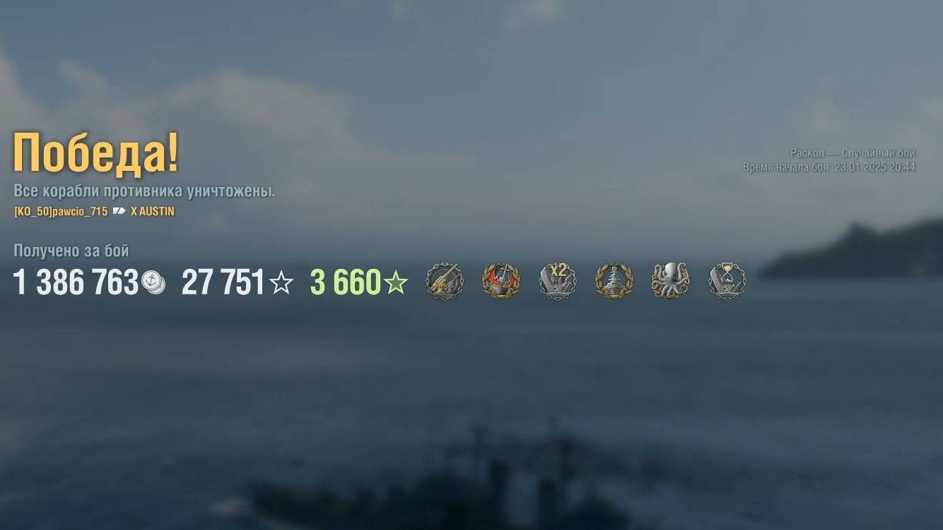 Крейсер Austin: +211к урона 7 фрагов на карте Раскол - World of Warships