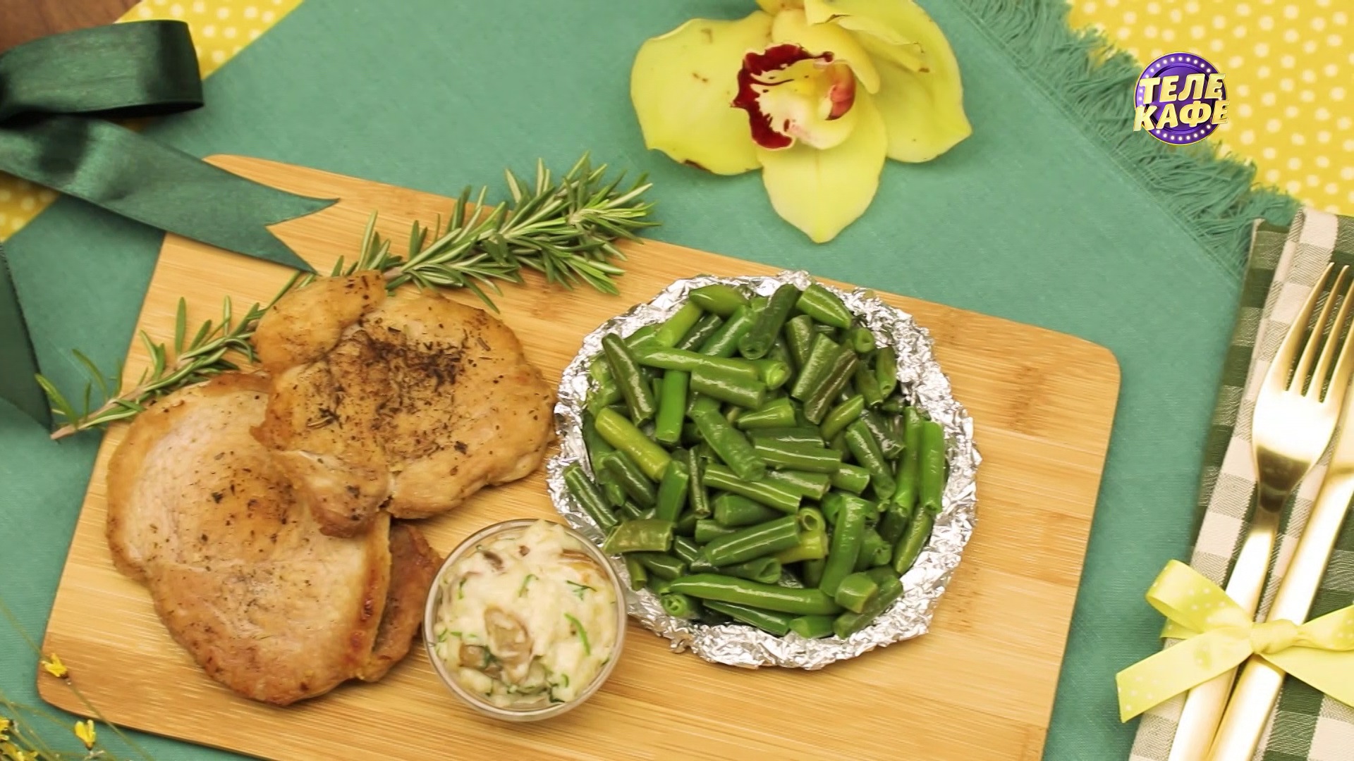Отбивные из свинины с грибным соусом и зелёной фасолью. Домашний соус из грибов. Готовим фасоль дома