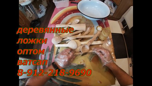 Пропитка маслом ложек деревянных.