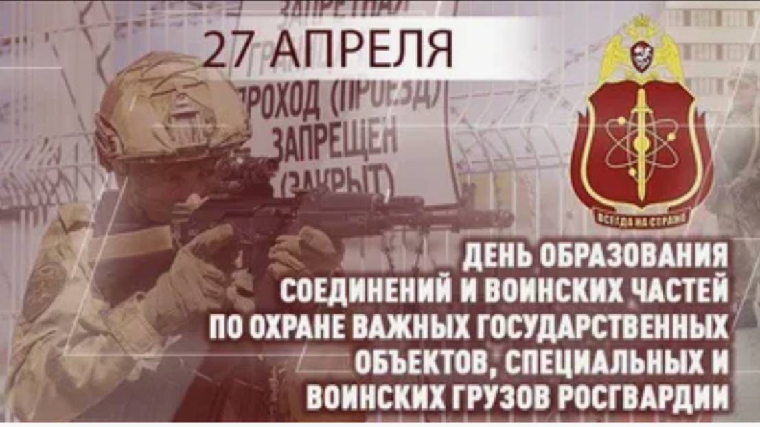 27 апреля в России отмечается День соединений и воинских частей по охране важных государственных объектов и специальных грузов Войск национальной гвардии Российской Федерации, которые ранее (до 2016 года) входили в состав Внутренних войск МВД России. Мои контакты: Ютуб- https://www.youtube.com/channel/UC60YqkKksZaT2x-uLcUCCCg ВКонтакте- https://vk.com/oblinova1965 ОК- https://ok.ru/group/59523134783660/video/c4532140 Телеграм- https://web.telegram.org/a/#-1001443284231 BOOJTSY: https://boosty.to/obovsemponenozhku Рутуб: https://rutube.ru/channel/23344395/