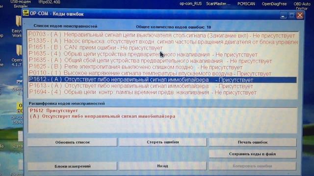 Opcom Компьютерная диагностика OPEL ASTRA G Дизель