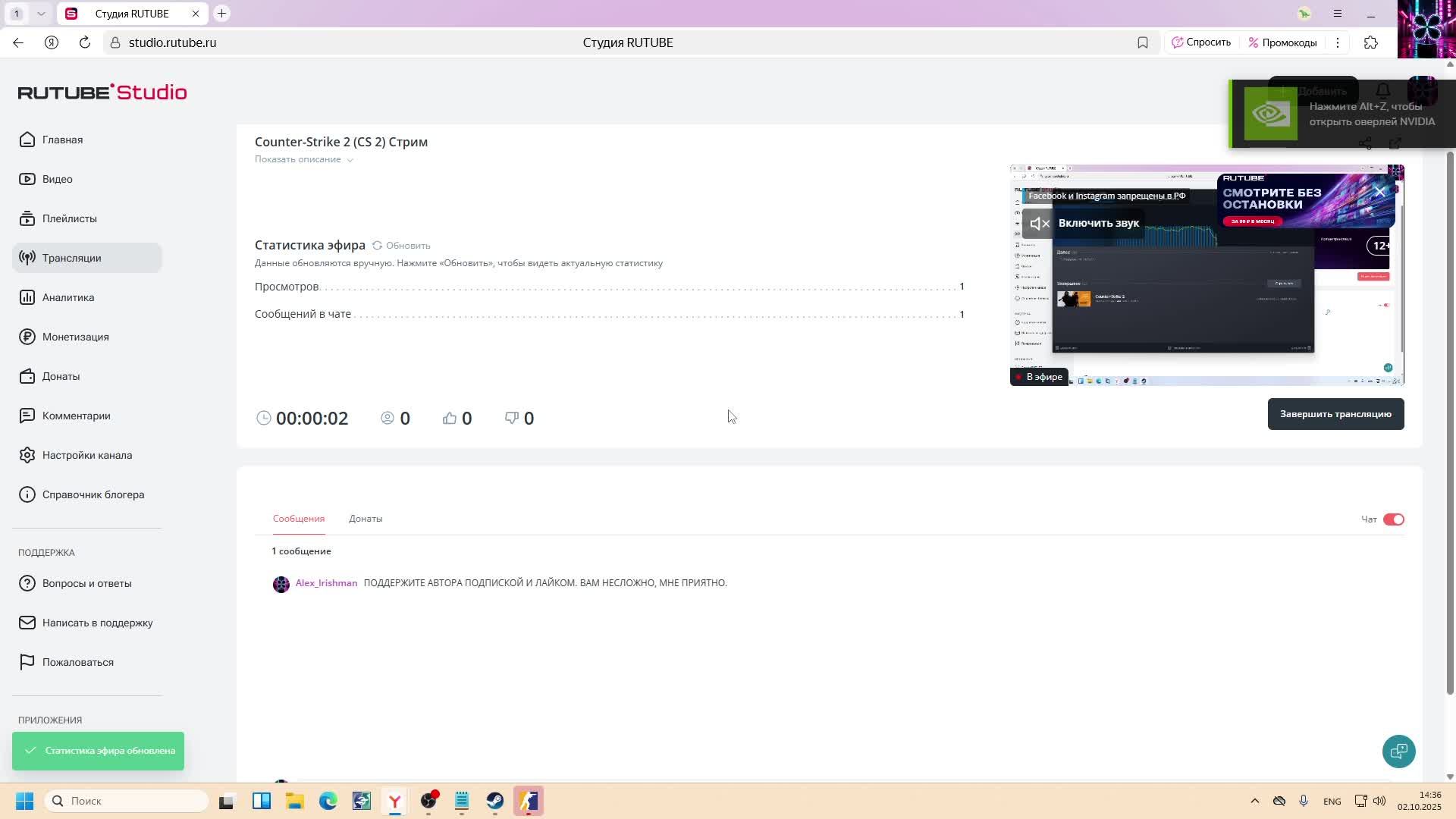Подписывайтесь, ставьте лайки. Поддержите автора, пожалуйста. Любой поддержке буду рад Counter-Strike 2 (CS 2) Играю в CS2 с шутками,прибаутками, весело в общем. Не судите строго. Поддержите начинающего стримера если можете на любую сумму. Любой поддержке буду рад:) —————— #юмор #игры #рутуб #смотреть_рутуб #рутуб_видео #рутуб_бесплатно #рутуб_последнее #игры_на_пк #стрим #трансляция #CS #counter-strike