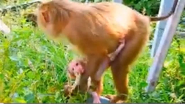 Макака весь день пасётся на траве, но на прибавлении молока это не... 000037487.mp4