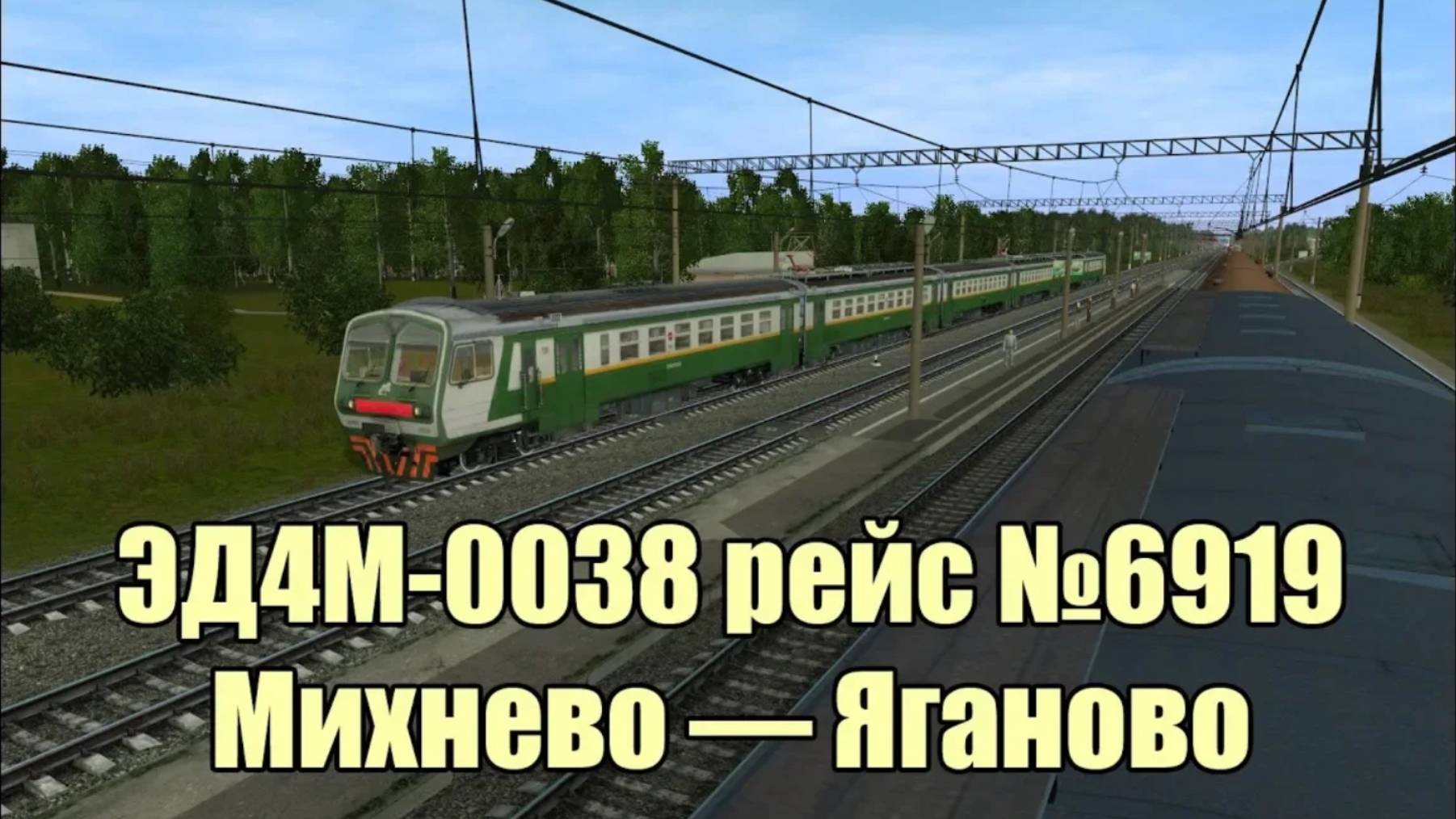 Чтобы расслабиться, проехал короткий маршрут Михнево Яганово. Расписание: http://prntscr.com/m9krw3 0:00 Михнево, тупик, запускаем электропоезд 2:39 отправляемся на платформу 5:13 Михнево, ждем отправления 10:06 следующая остановка — пл 328 км 15:34 пл 328 км 15:46 следующая остановка — пл 332 км 20:29 пл 332 км 21:21 следующая остановка — Малино 25:50 Малино 26:29 следующая остановка — пл 341 км 30:48 пл 341 км 31:33 следующая остановка — Яганово 37:19 Яганово