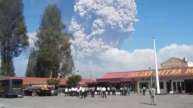 В Индонезии произошло извержение вулкана Синабунг, который выбросил 5-километровый столб пепла.