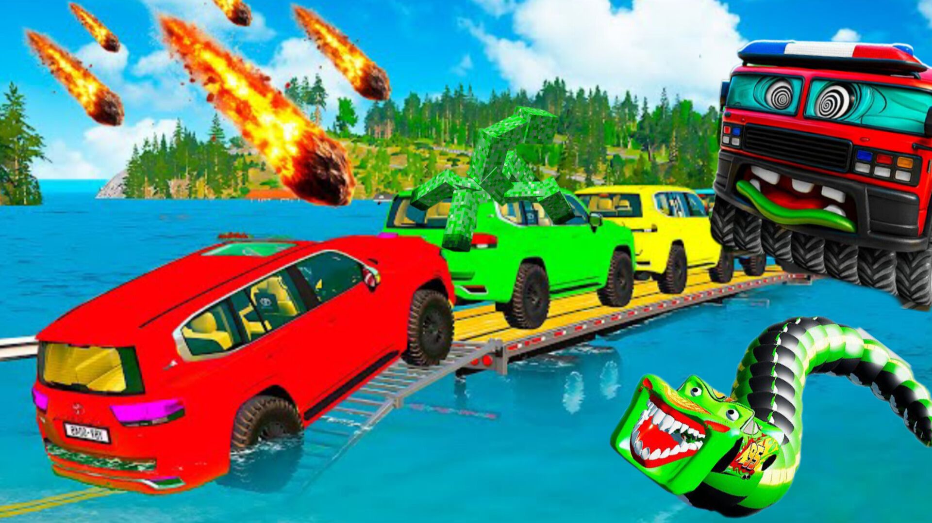 СПРУНКИ майнкрафт мультфильм ВСЕ МОНСТРЫ, Большие и маленькие машины, ПОЖИРАТЕЛЕМ АВТОМОБИЛЕЙ И АВТОБУСОВ – BeamNG Drive