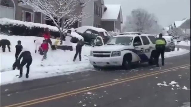 Дети атаковали полицейский автомобиль снежками. #прикол #дети #зима #снежки