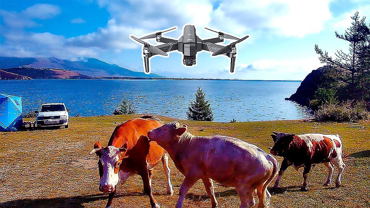 Реакция коровы на дрон SJRC F11 4K PRO. Пасу коров квадрокоптером на Байкале!:-)