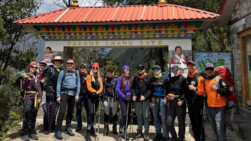 Группа Клуба 7 Вершин благополучно добралась до Луклы и Пакдинга, сыграв по дороге в футбол