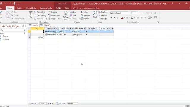 MS Access Tutorial for creating tables and SQL query