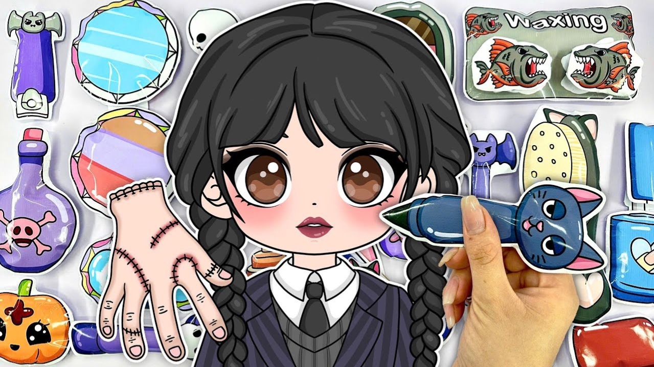 Бумажные поделки WEDNESDAY ADDAMS по уходу за кожей, макияж и наряжание ASMR Распаковка сумок