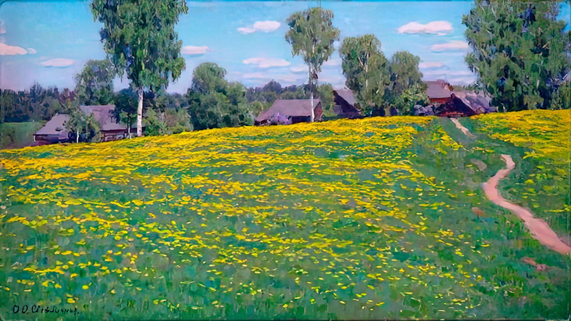🖼️ Светличная Ольга Григорьевна — Калужский сельский пейзаж от реализма через опыт AI к фотографическим реалиям 🎨 О художнице и замысле Это не просто слайд-шоу. Это визуальный рассказ о художнице, чья кисть умела слышать тишину берёз, движение ручья, дыхание одуванчиков. Ольга Григорьевна Светличная (1915–1997) — пейзажист, чьи работы выросли из калужской земли, из света, из памяти. Её картины — не сцены, а состояния: весна как пробуждение, осень как пауза, лето как согласие с жизнью. 🧬 О структуре цифрового цикла В этом видео — цифровой цикл, построенный по формуле 1+25: один оригинал, обработанный с сохранением фактуры мазка, порождает двадцать пять вариаций. Пять — в стиле Leonardo Diffusion XL, от сюжетного сродства до лёгкой фэнтези. Четыре — в акварели, где масло растворяется в водяной стихии. Ещё восемь — в Microsoft Designer, где пастель, мастихин и кисть создают новые слои восприятия. И, наконец, четыре фотореалистичные реплики — как возвращение к тому, что художница когда-то увидела на пленэре, до замысла, до холста. 🖼️ Эпизоды из цикла 🍂 Осенняя тишина Берёзовая роща стоит, как будто затаила дыхание. Белые стволы — как строки письма, написанного ветром. Листва — жёлтая, коричневая, почти ушедшая — шуршит в траве, не мешая тишине. Свет рассеян, небо серое, но не грустное — вдумчивое. Это не осень, это переход. Не конец, а пауза. 📸 Примечание: цифровая реплика картины страдает от расфокуса и чрезмерной малиновой тональности — вероятно, это результат старой плёночной съёмки, усилившей фактуру холста и исказившей цветовой баланс. В оригинале, скорее всего, преобладали охристо-серые тона, соответствующие задумчивой атмосфере поздней осени. 🌸 Букет черёмухи Стеклянная ваза стоит на столе, как будто случайно. Белые цветы — скромные, как весна, которая ещё не уверена, что пришла. Фон — серый, почти незаметный. Падают лепестки — не как потеря, а как естественное движение времени. Это не натюрморт — это мгновение, которое не хочет исчезать. 💧 Весенний ручей Вода не течёт — она думает. Молодые деревья — тонкие, почти прозрачные. Земля — ещё не зелёная, но уже не зимняя. Всё здесь — на грани: между холодом и теплом, между тишиной и звуком. Это не пейзаж — это внутреннее пробуждение. 🌼 Майские одуванчики Поле — как радость, которую не надо объяснять. Жёлтые цветы — не акценты, а ритм. Тропинка — как приглашение: иди, не спрашивай куда. Это не весна — это согласие с жизнью. 📺 О взаимодействии со зрителем 🕹️ Свобода восприятия Видео — это не поток. Это — пространство для взгляда. Зритель может остановиться, промотать, вернуться к запомненному эпизоду. Может замедлить показ, отключить музыку, рассмотреть сюжет детально. Это — не экскурсия с голосом гида. Это — личная прогулка по памяти художницы, по её свету, по её тишине. 🎵 Музыка и пауза Музыка без слов не диктует настроение — она открывает его. Реплики не требуют объяснений — они предлагают почувствовать. И если вы задержались на одном кадре дольше, чем на других — значит, он стал вашим. Не потому, что так задумано, а потому, что вы услышали. 🧵 Завершение рассказа 🖌️ Финальный штрих Этот цикл — не иллюстрация, а воспоминание о взгляде. Не о том, что было написано, а о том, что было почувствовано. От кисти — к цифровому дыханию. От реализма — к вариативному размышлению. От фэнтези — к фотографическим ре