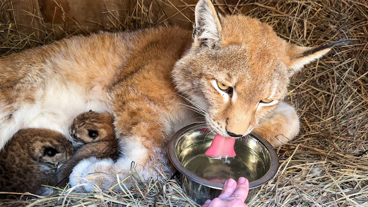 РЫСЬ УМКА С КОТЯТАМИ ПОСЛЕ РОДОВ / Алиса близко знакомится с рысями / Ханна сделала себе гнездо