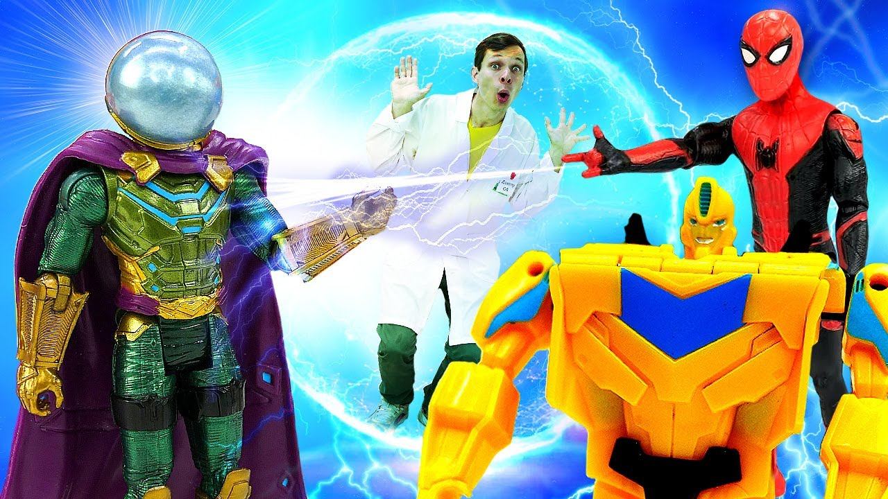 Видео про супергероев: Человек Паук сразился с Мистерио! Меняем колеса Бамблби! Игры в больницу
