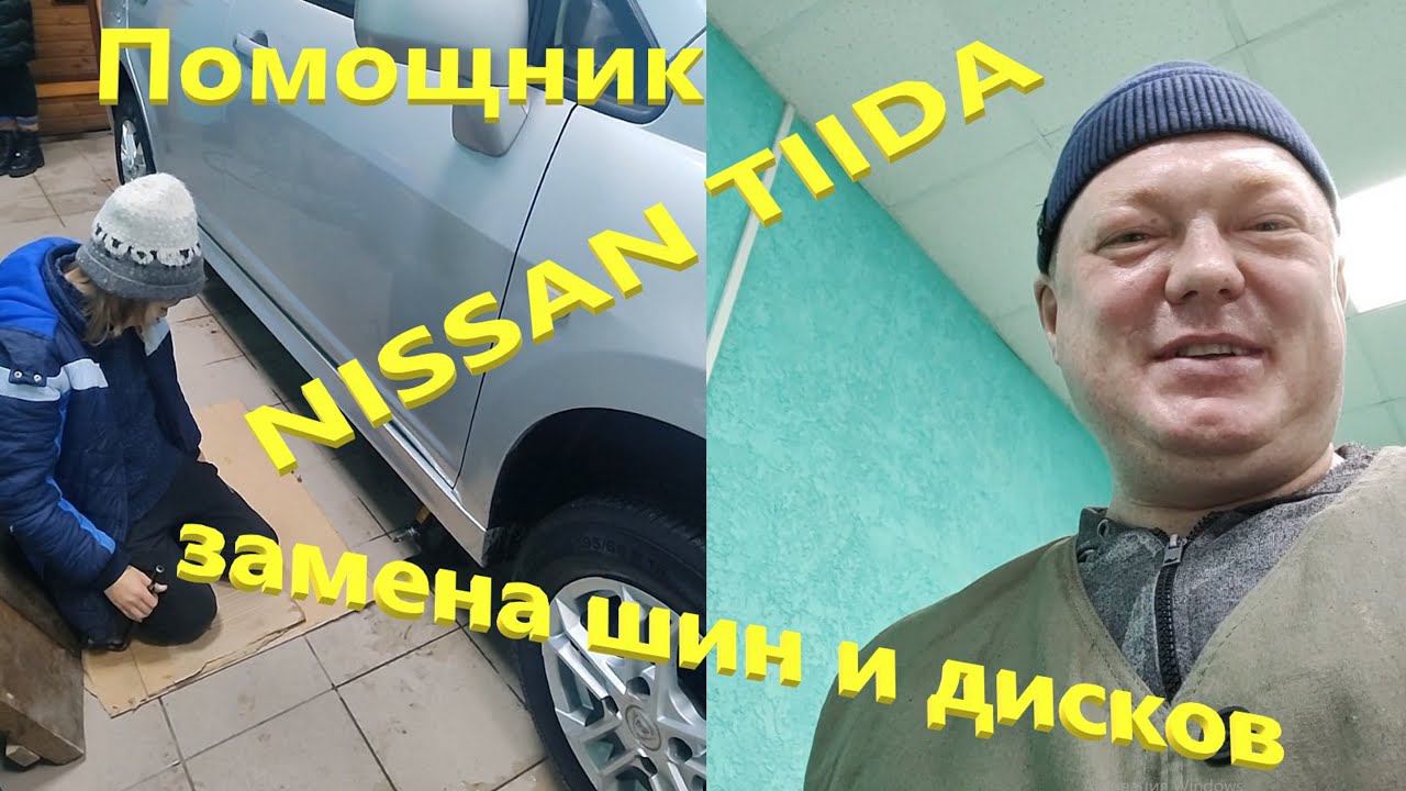 Замена летних шин на шипованные. Помощник. Nissan Tiida.