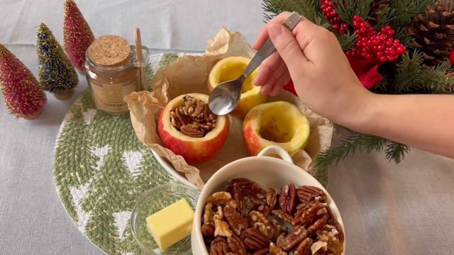 Запечённые яблоки с грецким орехом и корицей. Быстрый