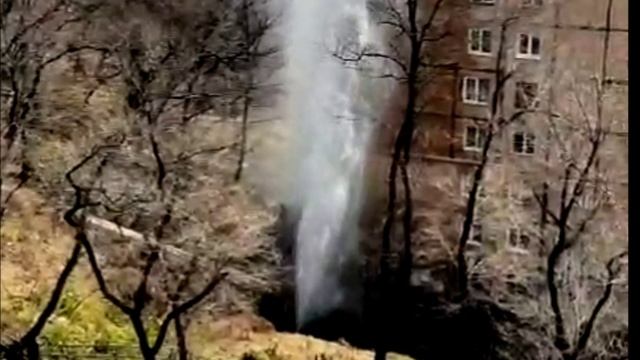 Во Владивостоке бьет фонтан воды у жилых домов