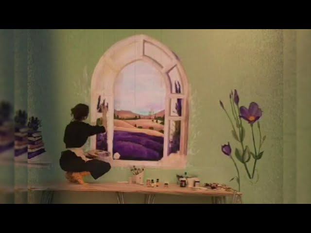 Окно с видом на лавандовые поля в здании "Школа им.Р.Роллана"