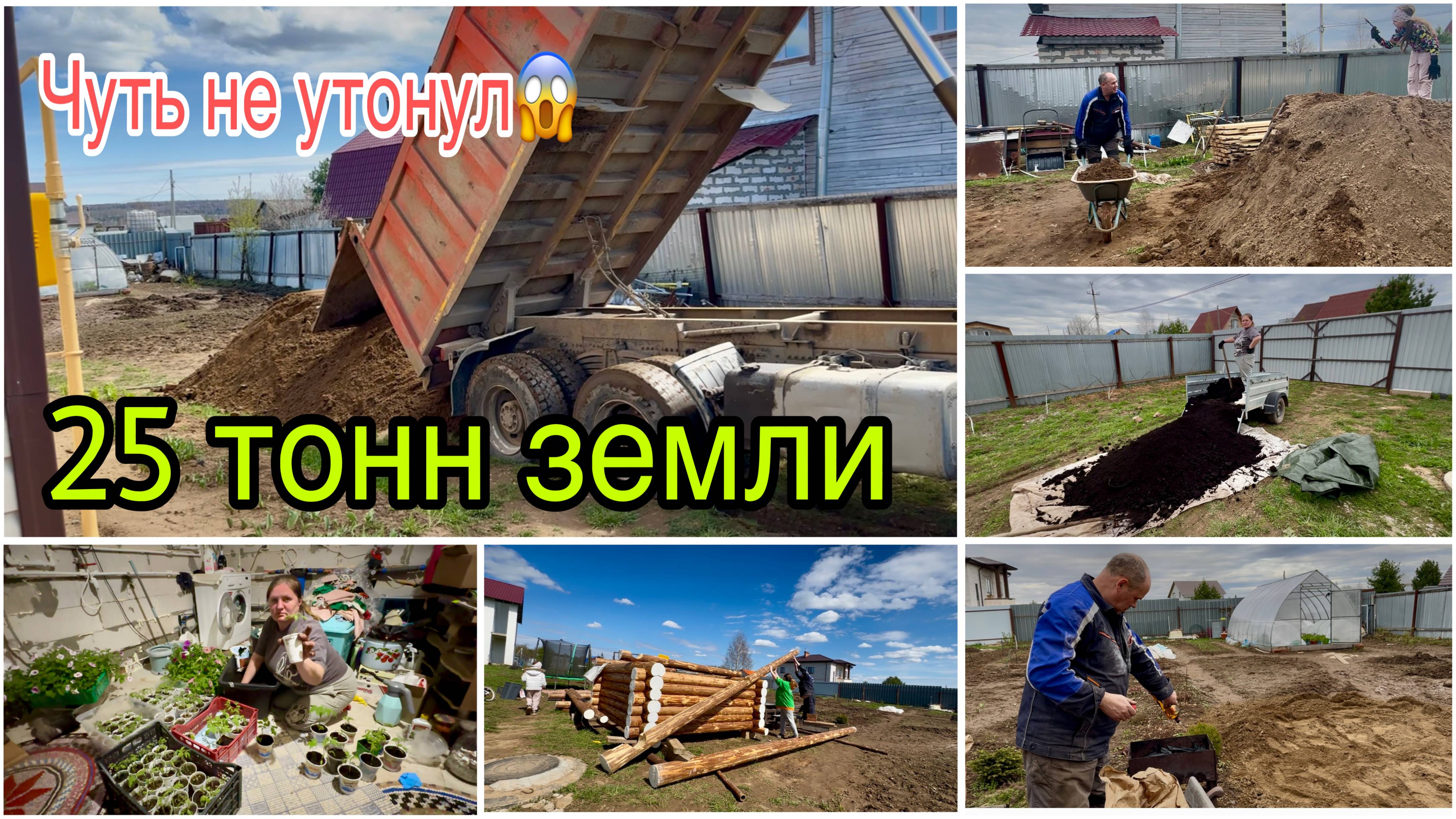 Привезли земли 25 тонн. Съездили за черной землей. Купили теплицу. Отсыпаем огород. Спасаю помидоры