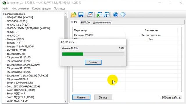 Микас 12 чтение флеш комбилоадером