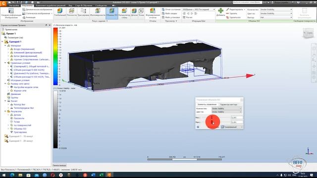 Моделирование работы систем противопожарной вентиляции в коридоре 2