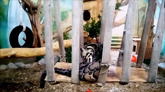 Самка дымчатого леопарда занималась гигиеной и уснула 22.01.2025