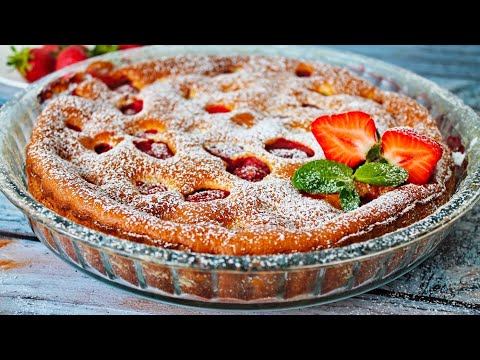 Очень быстрый и простой пирог с клубникой, просто размешал все ложкой и в духовку! РЕЦЕПТ : клубника 400 г яйца 4 шт мука 120 г сливки 20% 200 мл сахар 110-120 г ванильный сахар 5-7 г соль щепотка разрыхлитель 5 г сахарная пудра для украшения сливочное масло 20 г смазать форму Приятного аппетита! #клафути #клафутисягодами #пирогклафути #пирогсклубникой #выпечка #рацепты #сладкаявыпечка #кчаю #простаявыпечка