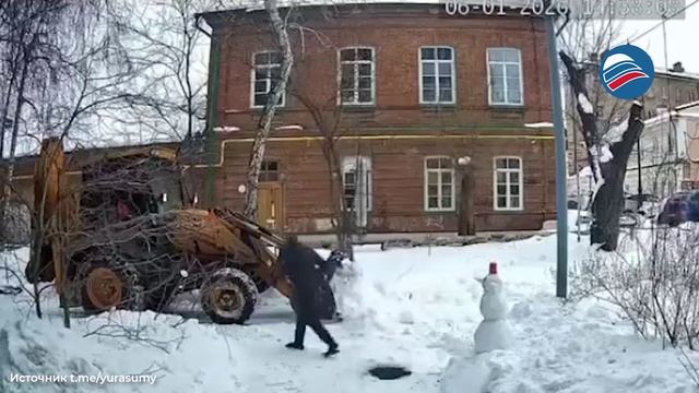 Русская душа с добрым сердцем: тракторист перенёс снеговика во время расчистки снега