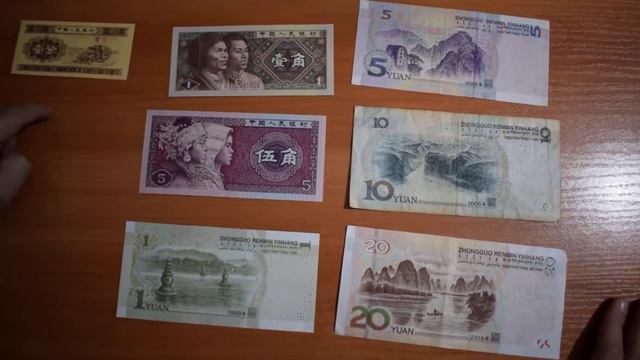Ще ви покажа банкноти - китайски юан от различен номинал и различни емисии. 1 фен - 1953 г 1 и 5 дзяо - 1980 г 1 юан - 1999 г 5 и 10 юан - 2005 г 20 юан - 2019 г